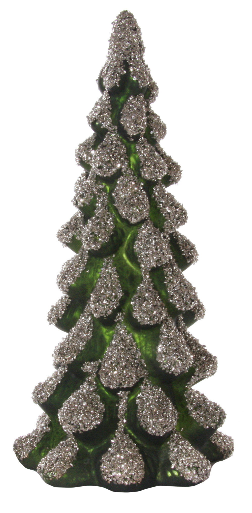 Et nydelig grønt juletre i glass m/glitter 25cm.