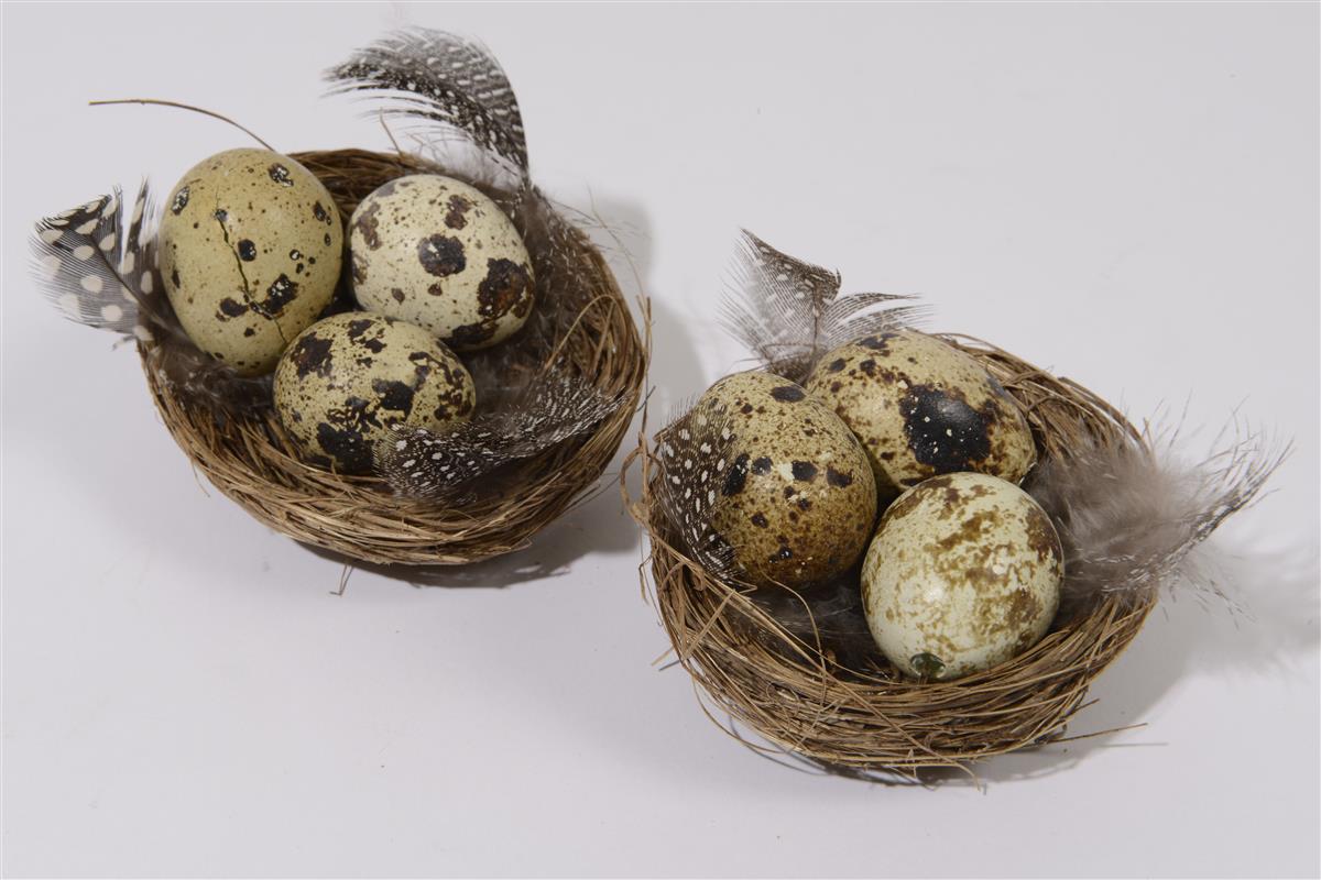Koselige reder med vaktel egg . Det er en tynn ståltråd festet i bunn så den kan stikkes oppi bla. blomster.