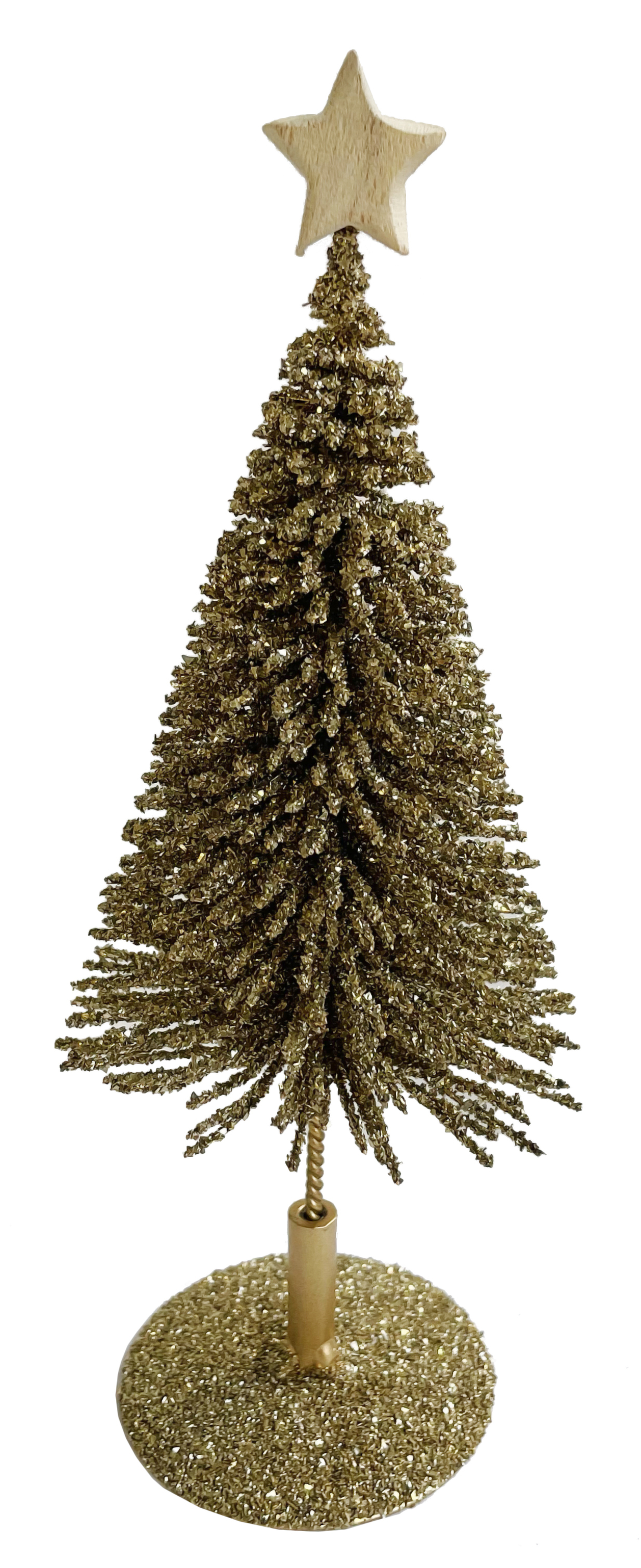 Metalltre med tiffany glass glitter med trestjerne 21cm.