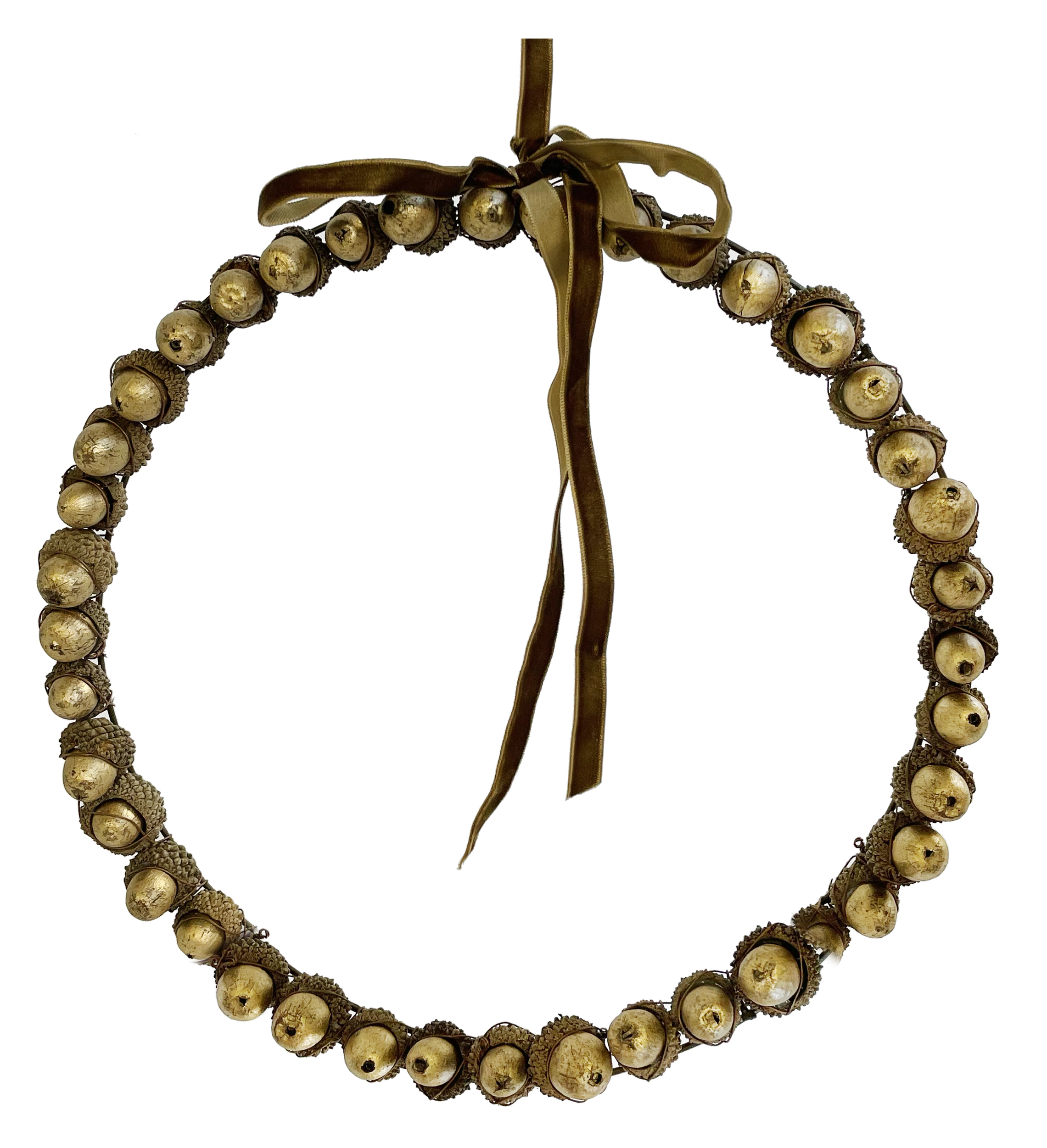 En delikat eikenøtt ring i gull med fløyelsbånd. Den er 31cm. i diameter.