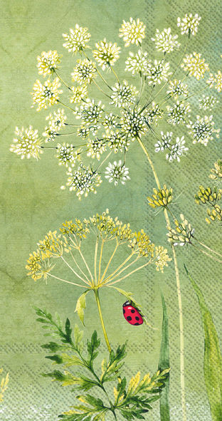 Det er nesten så du "lukter" sommer stemningen når ser disse nydelige buffe serviettene med marihøner og hundekjeks.