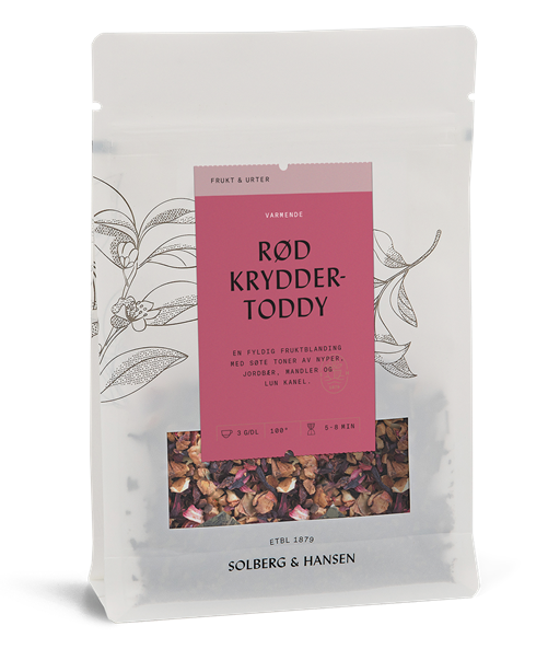 Ingredienser: eplebiter, hibiskus, nypeskall, kanel, aroma, mandelbiter, nellik. Allergener: mandler. Kan inneholde spor av andre nøtter.